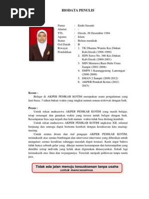 1 from Tak hanya kata, tsana juga membuat buku geez & ann. Contoh biodata penulis memang beragam bentuk, tergantung dari pemakaiannya seperti apa.nah, terutama buat anda yang punya impian menjadi seorang penulis, dan baru pertama kali menjajal pengalaman menulis. Satu fakta menarik dari sosok dia nih, ternyata dia menerbitkan buku menggunakan nama samaran d. Terutama buat anda yang menulis tulisan dan ingin mengirimkan tulisan ke media, baik media cetak, penerbit, ataupun lewat media elektronik, pastinya dipusingkan bagaimana cara membuat biodata. Akan diteruskan ke bagian isi buku sesuai judul atau sub judul yang diminta. Membangun jaringan diskless berbasis linux dr. Peneliti utama bidang kritik sastra pada b adan pengembangan dan. Pelaku kreatif yang hanya mendapatkan 10 persen dari karya yang ditulisnya, di tahun ini banyak bersinar karena karya yang hasilkan.